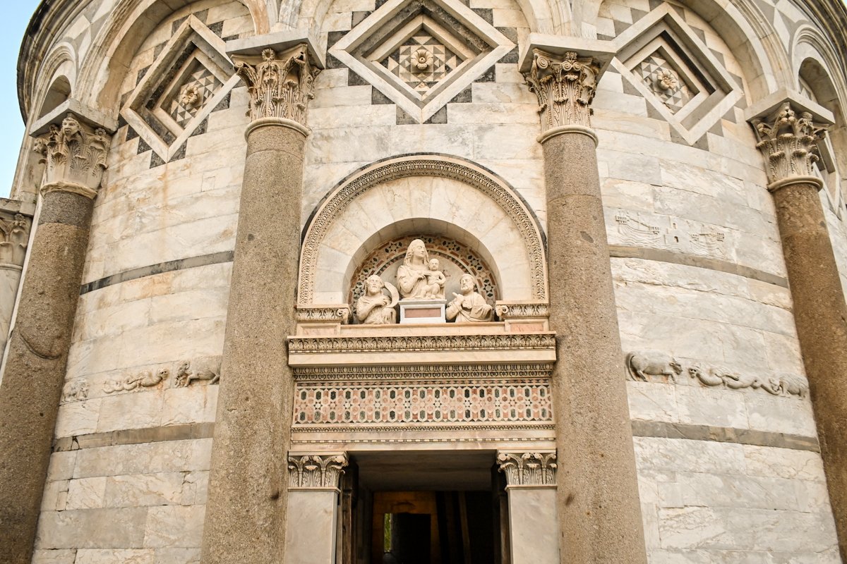 Direkt nach unserer Ankunft gingen wir zum Ticketschalter. Zu unserer Überraschung herrschte dort völlige Leere – kein Anstehen, kein Gedränge. Nur wenige Minuten später hielten wir die Eintrittskarten für den schiefen Turm von Pisa in den Händen. Wieder auf der Piazza, schien der Turm fast, als würde er nur auf uns warten. Endlich stand einer der lang ersehnten Aufstiege bevor, zu einem Bauwerk, das wir bisher nur aus Erzählungen und Bildern kannten. Über jahrhundertealte Marmorstufen sollte es nun in den Himmel von Pisa hinaufgehen.